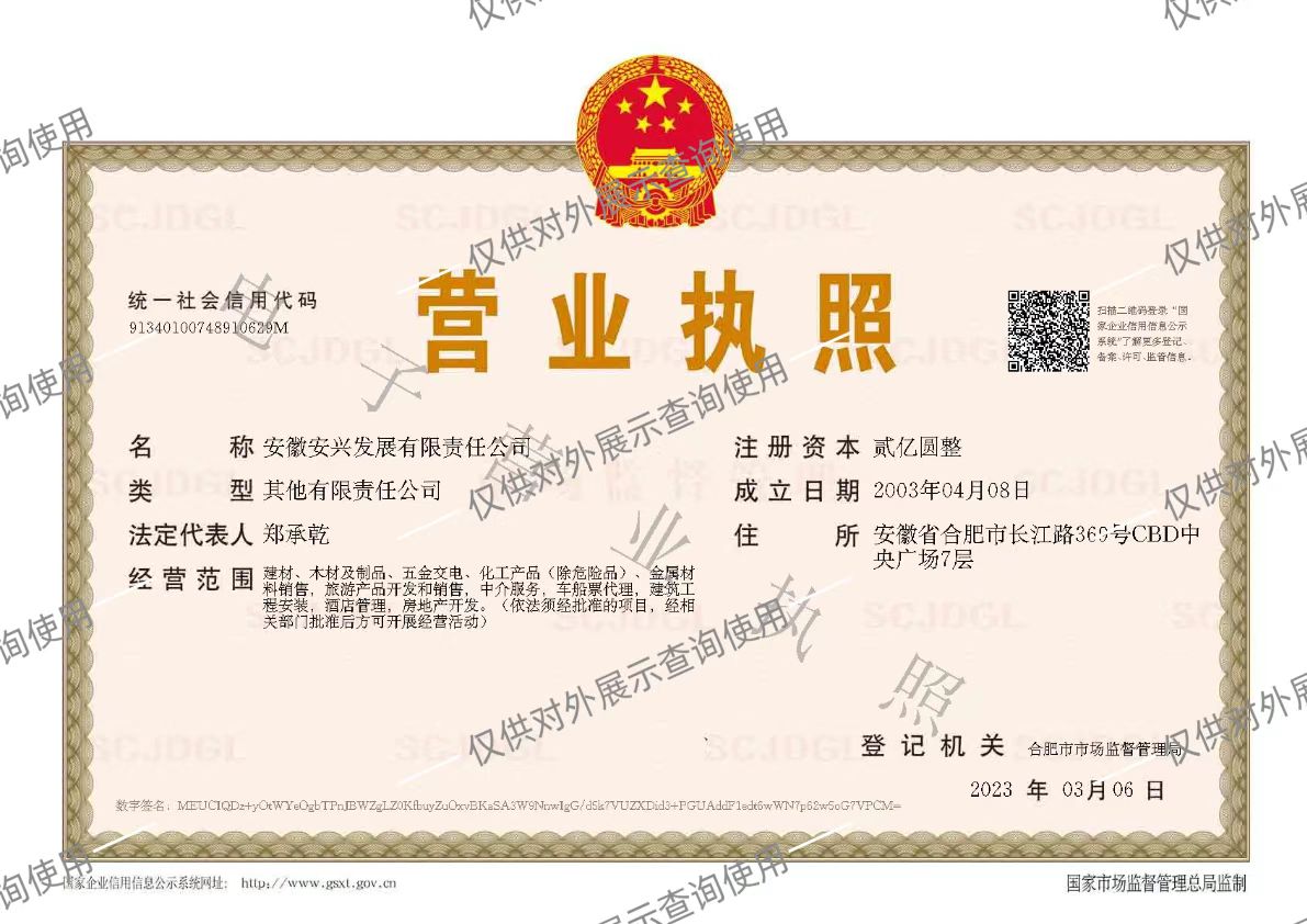ABOUT US 公司簡介 安徽安興發展有限責任公司(以下簡稱“發展公司”)是經安徽省經貿委批準,由安徽安興聯合總公司所屬安徽省安興房地產開發公司及安徽安鑫旅游有限公司重組改制,于2003年2月正式成立,原名“安徽安興發展股份有限公司”。 發展公司歷經2007年和2013年兩次股改,注冊資本由期初3000萬元人民幣增至20000萬元人民幣,由國有股、社會法人...